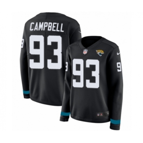 >Women's Nike Jacksonville Jaguars #93 Calais Campbell Limited Black Therma Long Sleeve NFL Jersey