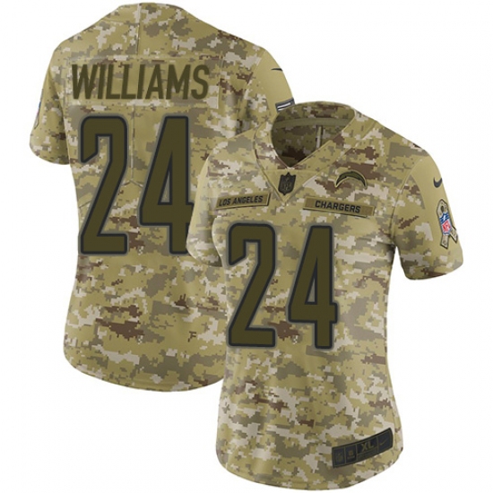 >Women's Nike Los Angeles Chargers #24 Trevor Williams Limited Camo 2018 Salute to Service NFL Jersey