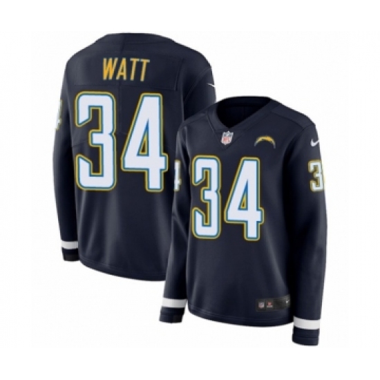 Women's Nike Los Angeles Chargers #34 Derek Watt Limited Navy Blue Therma Long Sleeve NFL Jersey