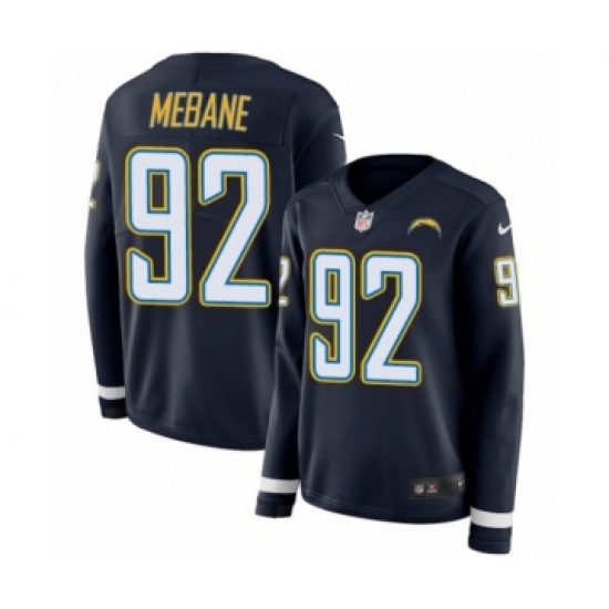 Women's Nike Los Angeles Chargers #92 Brandon Mebane Limited Navy Blue Therma Long Sleeve NFL Jersey
