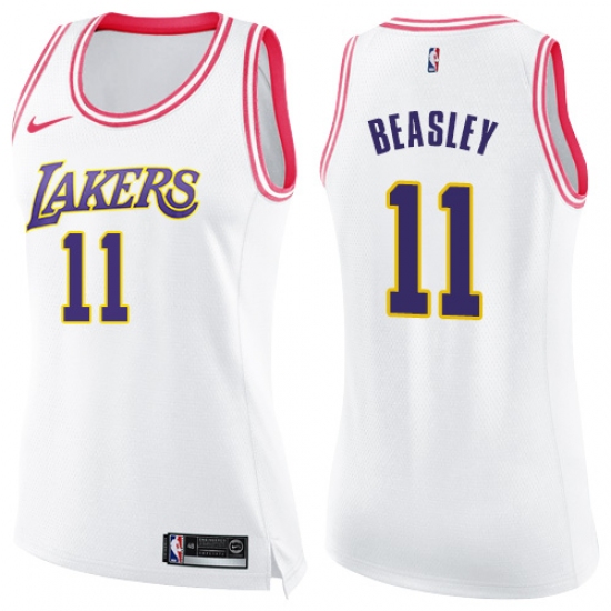Women's Nike Los Angeles Lakers #11 Michael Beasley Swingman White Pink Fashion NBA Jersey