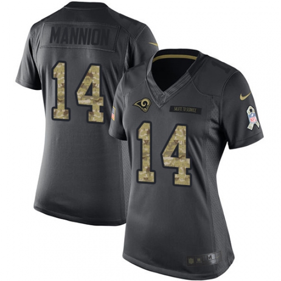 Home>NFL>Los Angeles Rams>Sean Mannion>Women's Nike Los Angeles Rams #14 Sean Mannion Limited Black 2016 Salute to Service NFL Jersey