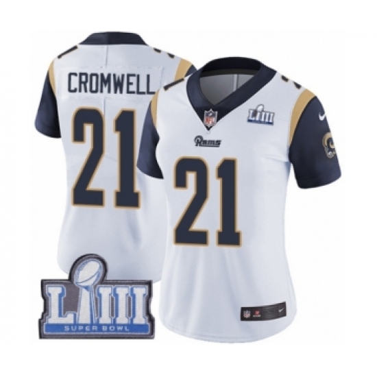 Women's Nike Los Angeles Rams #21 Nolan Cromwell White Vapor Untouchable Limited Player Super Bowl LIII Bound NFL Jersey