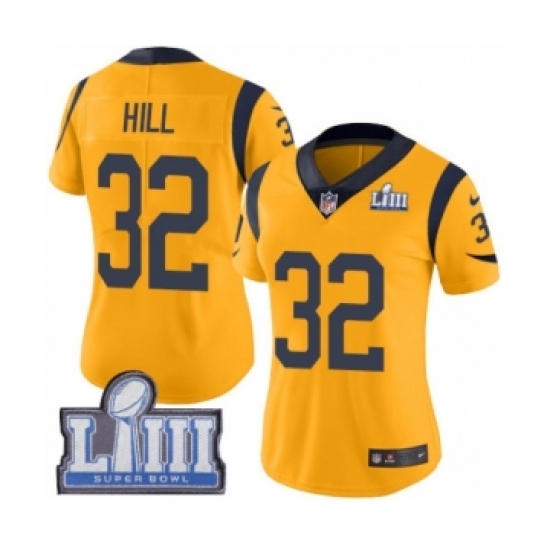 >Women's Nike Los Angeles Rams #32 Troy Hill Limited Gold Rush Vapor Untouchable Super Bowl LIII Bound NFL Jersey