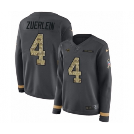 >Women's Nike Los Angeles Rams #4 Greg Zuerlein Limited Black Salute to Service Therma Long Sleeve NFL Jersey