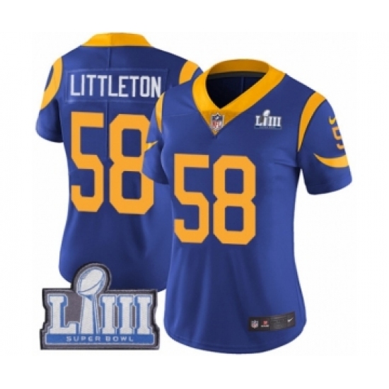 Women's Nike Los Angeles Rams #58 Cory Littleton Royal Blue Alternate Vapor Untouchable Limited Player Super Bowl LIII Bound NFL Jersey