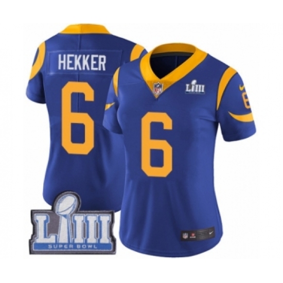 Women's Nike Los Angeles Rams #6 Johnny Hekker Royal Blue Alternate Vapor Untouchable Limited Player Super Bowl LIII Bound NFL Jersey