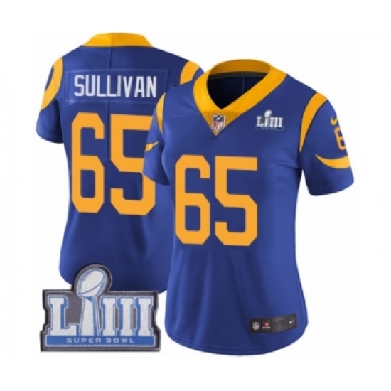 Women's Nike Los Angeles Rams #65 John Sullivan Royal Blue Alternate Vapor Untouchable Limited Player Super Bowl LIII Bound NFL Jersey