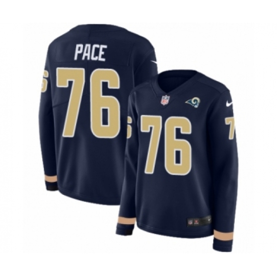 Women's Nike Los Angeles Rams #76 Orlando Pace Limited Navy Blue Therma Long Sleeve NFL Jersey