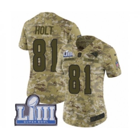 Women's Nike Los Angeles Rams #81 Torry Holt Limited Camo 2018 Salute to Service Super Bowl LIII Bound NFL Jersey