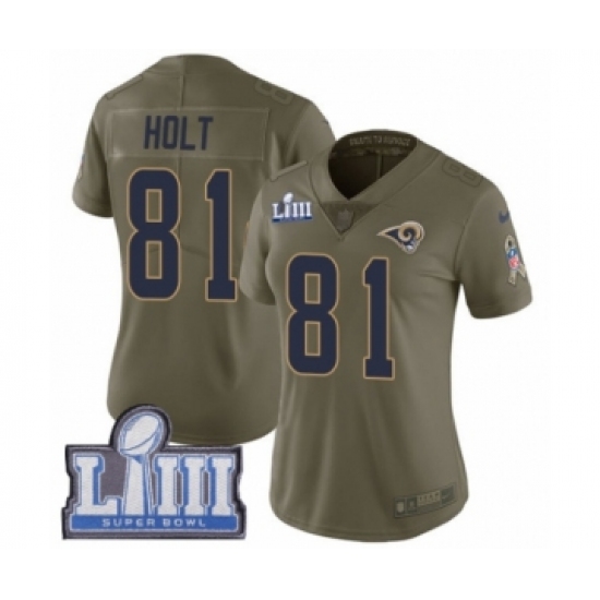 >Women's Nike Los Angeles Rams #81 Torry Holt Limited Olive 2017 Salute to Service Super Bowl LIII Bound NFL Jersey