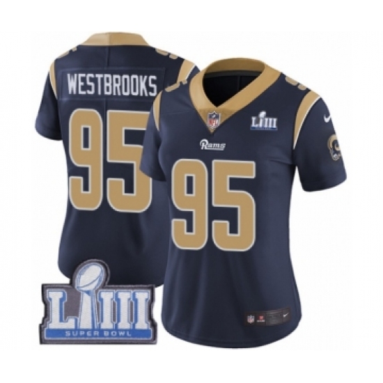 >Women's Nike Los Angeles Rams #95 Ethan Westbrooks Navy Blue Team Color Vapor Untouchable Limited Player Super Bowl LIII Bound NFL Jersey