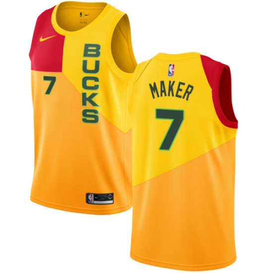 Women's Nike Milwaukee Bucks #7 Thon Maker Swingman Yellow NBA Jersey - City Edition