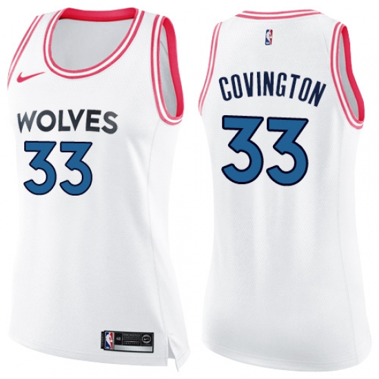 >Women's Nike Minnesota Timberwolves #33 Robert Covington Swingman White Pink Fashion NBA Jersey