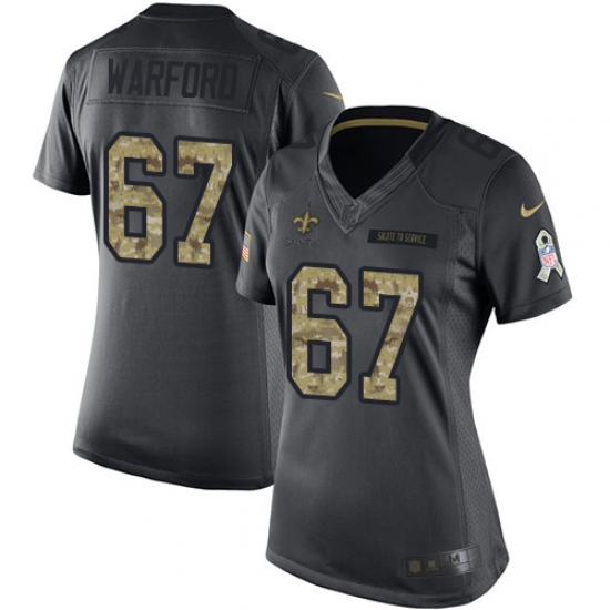 Women's Nike New Orleans Saints #67 Larry Warford Limited Black 2016 Salute to Service NFL Jersey