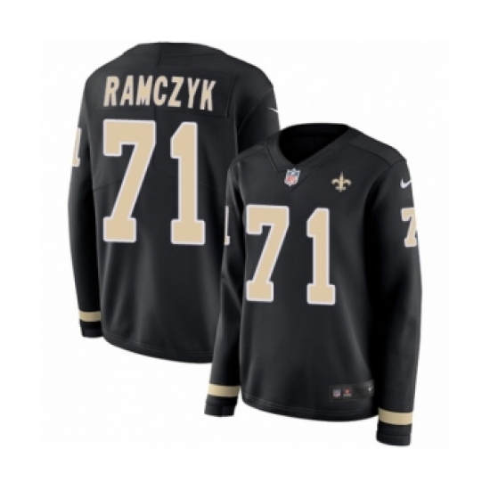 >Women's Nike New Orleans Saints #71 Ryan Ramczyk Limited Black Therma Long Sleeve NFL Jersey