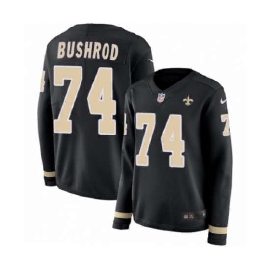 Women's Nike New Orleans Saints #74 Jermon Bushrod Limited Black Therma Long Sleeve NFL Jersey