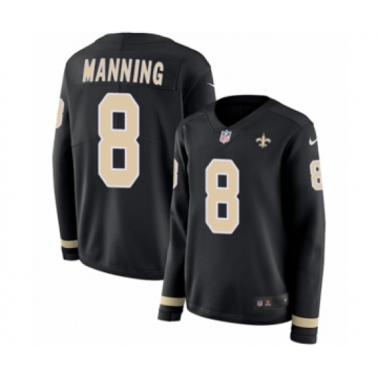 >Women's Nike New Orleans Saints #8 Archie Manning Limited Black Therma Long Sleeve NFL Jersey