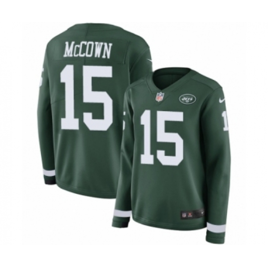 >Women's Nike New York Jets #15 Josh McCown Limited Green Therma Long Sleeve NFL Jersey