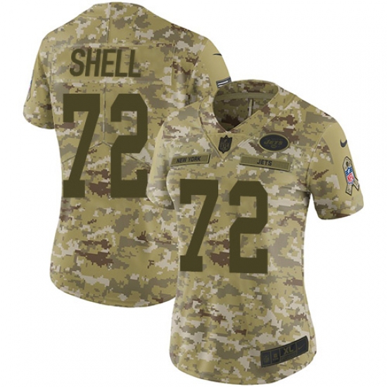Women's Nike New York Jets #72 Brandon Shell Limited Camo 2018 Salute to Service NFL Jersey