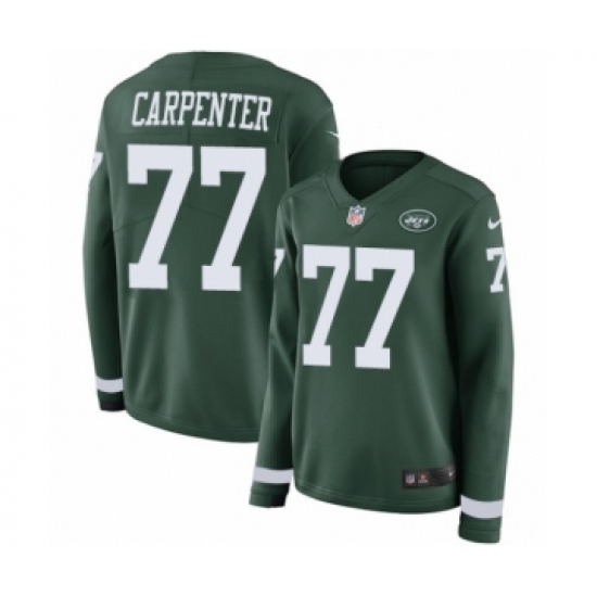 >Women's Nike New York Jets #77 James Carpenter Limited Green Therma Long Sleeve NFL Jersey