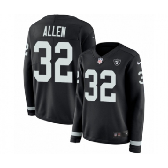 >Women's Nike Oakland Raiders #32 Marcus Allen Limited Black Therma Long Sleeve NFL Jersey