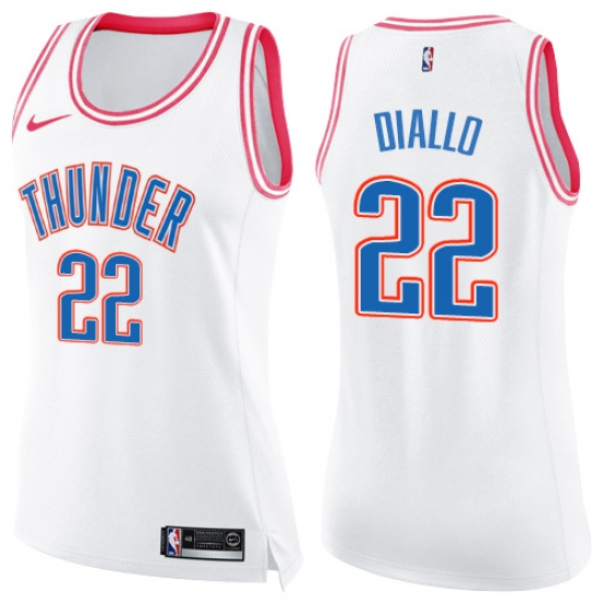 >Women's Nike Oklahoma City Thunder #22 Hamidou Diallo Swingman White Pink Fashion NBA Jersey