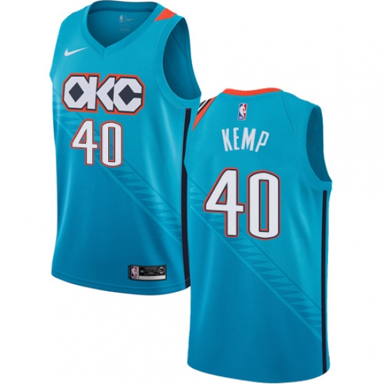 >Women's Nike Oklahoma City Thunder #40 Shawn Kemp Swingman Turquoise NBA Jersey - City Edition