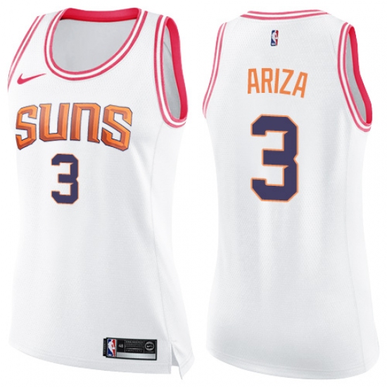 >Women's Nike Phoenix Suns #3 Trevor Ariza Swingman White Pink Fashion NBA Jersey