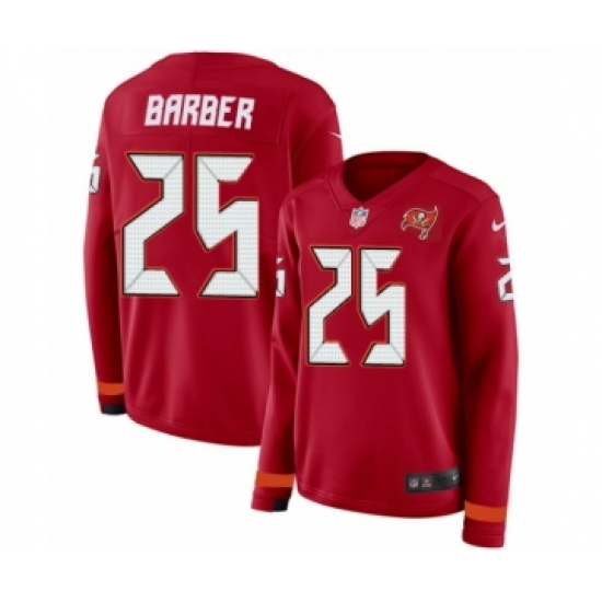 Women's Nike Tampa Bay Buccaneers #25 Peyton Barber Limited Red Therma Long Sleeve NFL Jersey