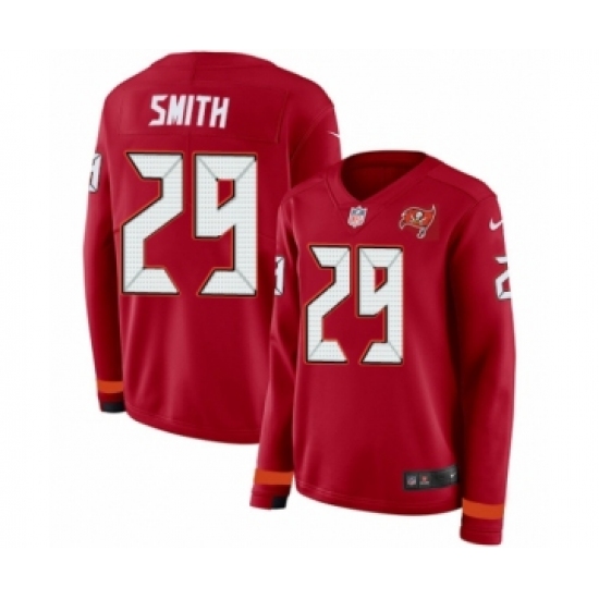 >Women's Nike Tampa Bay Buccaneers #29 Ryan Smith Limited Red Therma Long Sleeve NFL Jersey