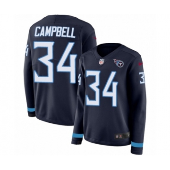 >Women's Nike Tennessee Titans #34 Earl Campbell Limited Navy Blue Therma Long Sleeve NFL Jersey