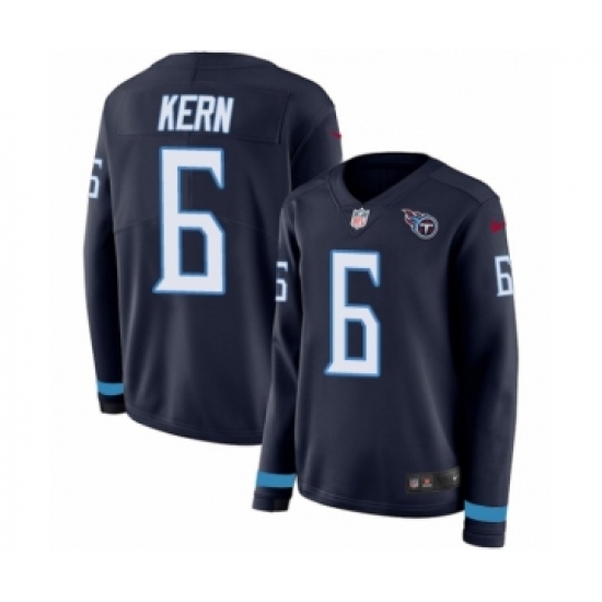 >Women's Nike Tennessee Titans #6 Brett Kern Limited Navy Blue Therma Long Sleeve NFL Jersey