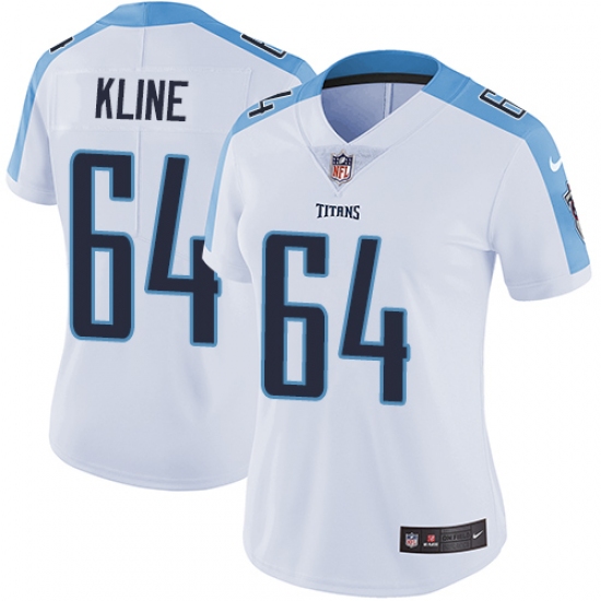 Home>NFL>Tennessee Titans>Josh Kline>Women's Nike Tennessee Titans #64 Josh Kline White Vapor Untouchable Limited Player NFL Jersey