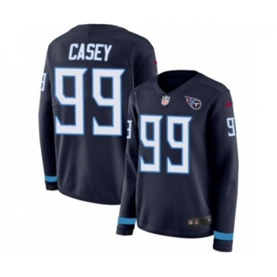 >Women's Nike Tennessee Titans #99 Jurrell Casey Limited Navy Blue Therma Long Sleeve NFL Jersey