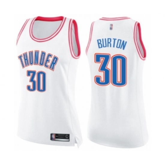 Women's Oklahoma City Thunder #30 Deonte Burton Swingman White Pink Fashion Basketball Jersey
