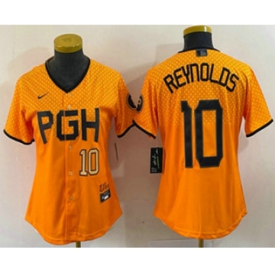 Women's Pittsburgh Pirates #10 Bryan Reynolds Number Yellowd 2023 City Connect Stitched Jersey2