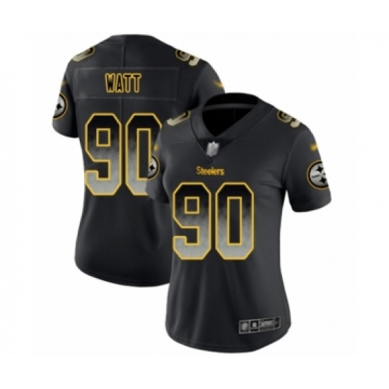 >Women's Pittsburgh Steelers #90 T. J. Watt Limited Black Smoke Fashion Football Jersey