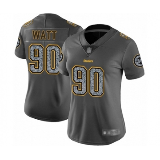 Women's Pittsburgh Steelers #90 T. J. Watt Limited Gray Static Fashion Football Jersey