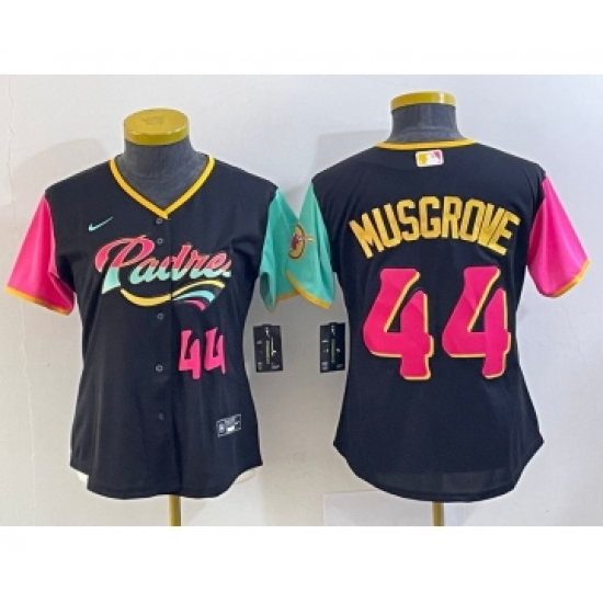 >Women's San Diego Padres #44 Joe Musgrove Number Black 2022 City Connect Cool Base Stitched Jersey