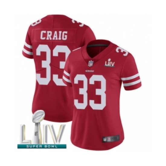 >Women's San Francisco 49ers #33 Roger Craig Red Team Color Vapor Untouchable Limited Player Super Bowl LIV Bound Football Jersey