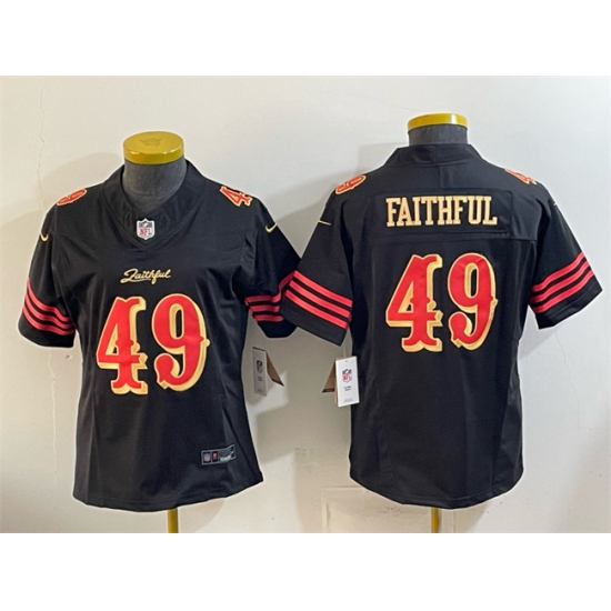 >Women's San Francisco 49ers #49 Faithful Black 2025 F.U.S.E. “Rivalries” Vapor Limited Stitched Jersey(Run Small)