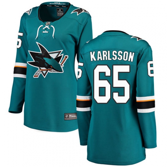 >Women's San Jose Sharks #65 Erik Karlsson Fanatics Branded Teal Green Home Breakaway NHL Jersey