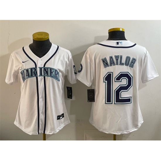 >Women's Seattle Mariners #12 Josh Naylor White Cool Base Stitched Baseball Jersey(Run Small)