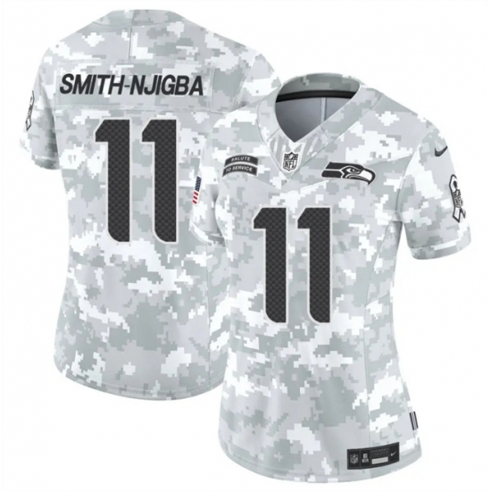 >Women's Seattle Seahawks #11 Jaxon Smith-Njigba 2024 F.U.S.E Arctic Camo Salute To Service Limited Stitched Football Jersey(Run Small)