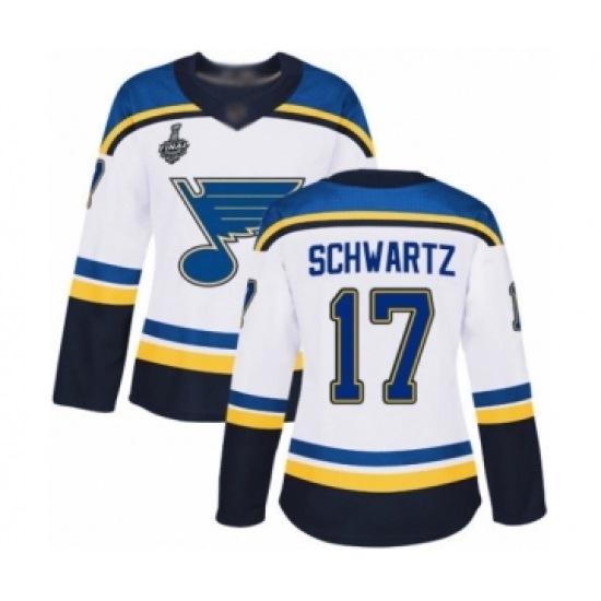 Women's St. Louis Blues #17 Jaden Schwartz Authentic White Away 2019 Stanley Cup Final Bound Hockey Jersey