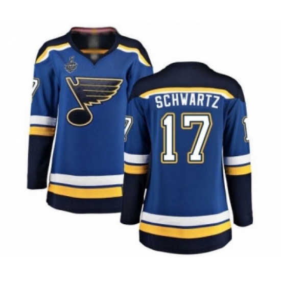 Women's St. Louis Blues #17 Jaden Schwartz Authentic Royal Blue Home 2019 Stanley Cup Champions Hockey Jersey