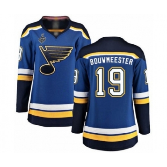>Women's St. Louis Blues #19 Jay Bouwmeester Fanatics Branded Royal Blue Home Breakaway 2019 Stanley Cup Final Bound Hockey Jersey