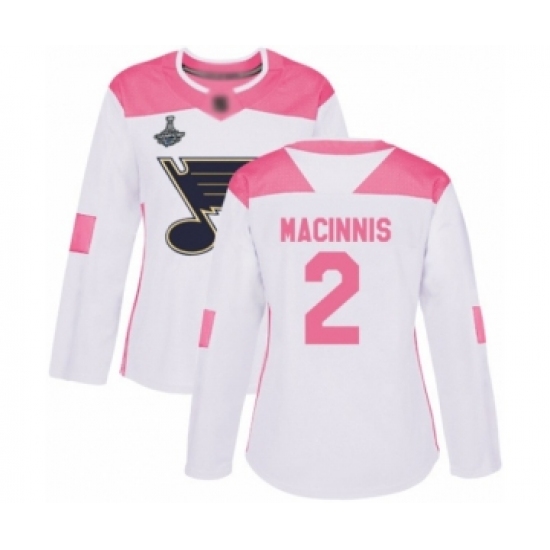 Women's St. Louis Blues #2 Al Macinnis Authentic White Pink Fashion 2019 Stanley Cup Champions Hockey Jersey