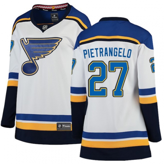 >Women's St. Louis Blues #27 Alex Pietrangelo Fanatics Branded White Away Breakaway NHL Jersey